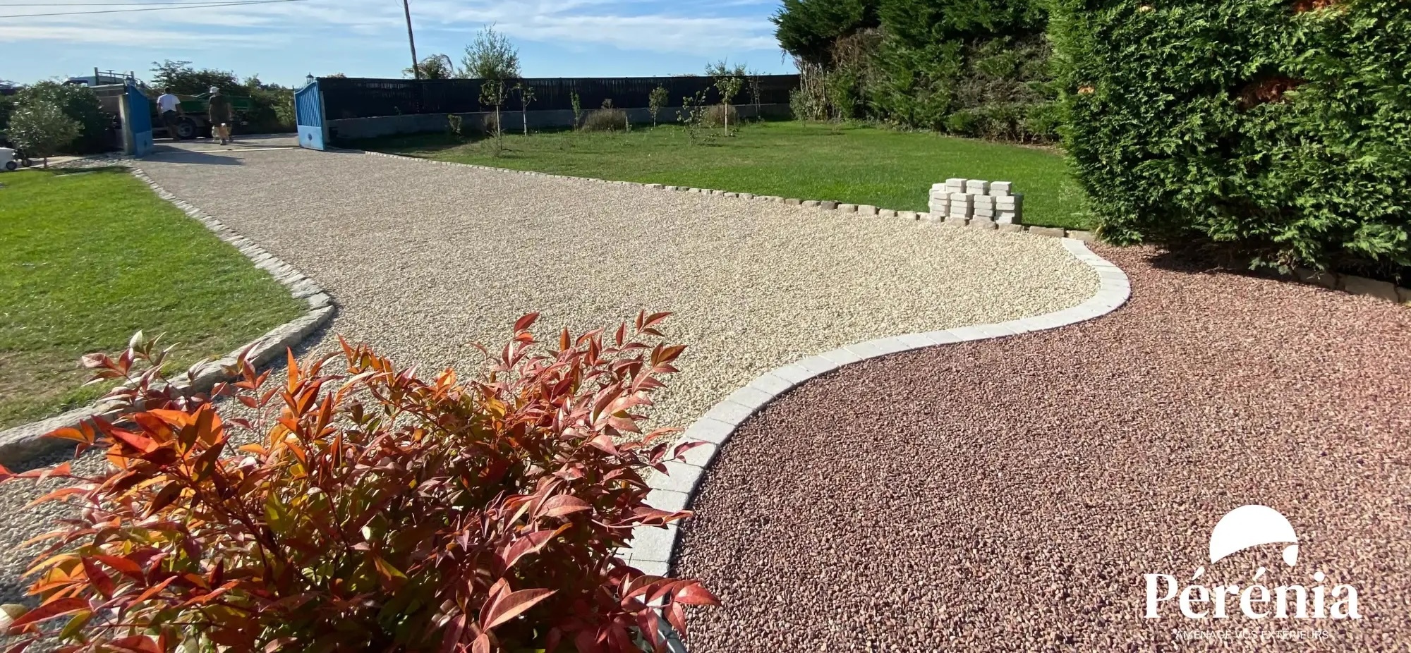 Vous souhaitez créer de belles finitions pour vos aménagements extérieurs ? Pour vous, l’esthétique de vos allées, cours et terrasses est aussi importante que leur fonctionnalité ? Vous trouvez l’enrobé trop impersonnel, froid et dénué d’une véritable personnalité ? Faites appel à l’expertise et au savoir-faire de Pérénia si vous recherchez un partenaire à l’écoute et en mesure de donner vie à vos envies décoratives. Ensemble, réinventons vos espaces extérieurs en combinant design, durabilité et personnalisation au cœur de réalisations qui ont du sens pour vous.